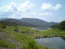 慣らしが終わったので、少しずつアクセルを開けていく。快調なモンキー!しばらく40~50km/h程度で走っていたら、ある異変に気づいた。モンキーではなく、おのれの異変に!普段、30km程度ではそれほど気にしなかったが、50kmちかくの速度になると、ブロックパターンタイヤのおかげでロードノイズがひどく、そのビリビリとした振動のせいで、両足が痺れてきたのだ!丁度よく休憩ポイントがあり、滑り込むように入った。しばし休憩~お盆中で日曜日。次から次へと車が出たり入ったり。バーベキューセットを積んだ若いグループ、レンタカーと思われる車両、色々だ。ちっこいバイクでいると変かな?浮いてる気がする・・。11:30頃、田瀬湖到着!
