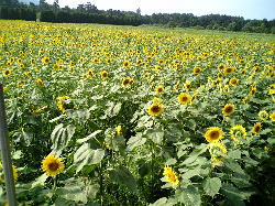 ほこりと汗で汚れた体よ洗い落とし、再び走り出す。とは言ったものの、あとは帰るだけ。なんかねーかなーとキョロキョロしながら走っていたら、『ひなわり畑?』こんなとこにひまわりなんて咲いていたのかってとこに、それはあった。有名なのか見物客が結構いる。再び、浮いている男一人。約160km!走ったわけで。あと50kmぐらいは余裕で走れる感じ!200km強も走れれば結構なとこまで行けるなーさて、今度はどこへ行こう?