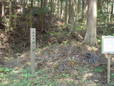 そして山大十祈り石の横には『丹波弥十郎屋敷跡』段々になっており、大きな屋敷だった事がうかがえる。山道があるがどこに通じているのだろう?