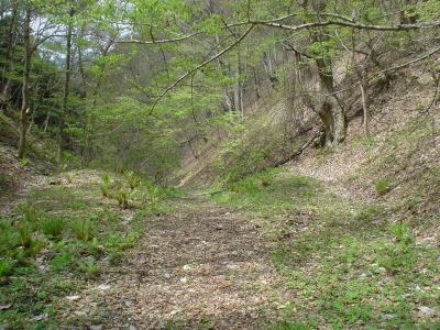 トロッコか押し車でも通った道か?比較的、広く歩き易い。山道とはあきらかに違う。