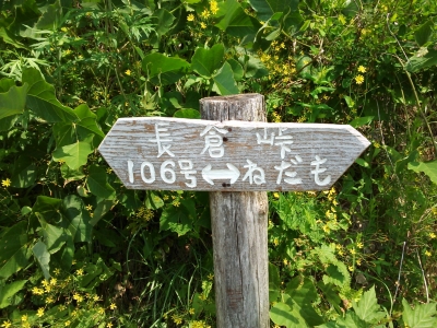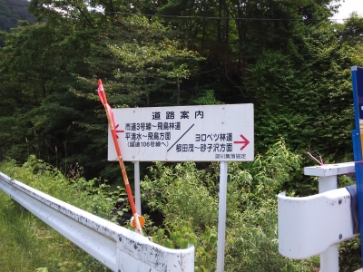 唯一の絶景ポイントの後ろには『長倉峠』の立て札。ヨロツベ林道ではないのか?と思いながらもヨロツベ林道の標柱には『ふるさと林道』とも記載されているので古くからは長倉峠が正しいのだろう。綺麗に舗装されヨロツベ林道と名称が変わったに違いない