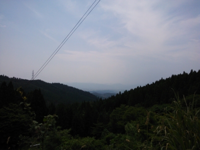 山の中を走り登って行くと山頂付近に辿り着く。唯一に見晴らしがきく場所で、遠くには南昌山が霞んで見える。