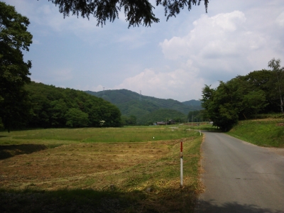 山屋。【811年頃、陸奥国司の長官がこの牧場に着目し、次席長官の藤原居経清を送り込んだ。経清は柵を作って住みついたようだ。後年、源義経たちが騎馬訓練をした地で、鍛えた力と技術は源平合戦において存分に発揮された。】かつて牧場だけあって広々。何度来てもホェーー!!っと心が奪われる。どっちから来ても木に囲まれている所を走ってくるから、この広々とした風景に出くわすとワァーってなって気持ちがよいんだよ!